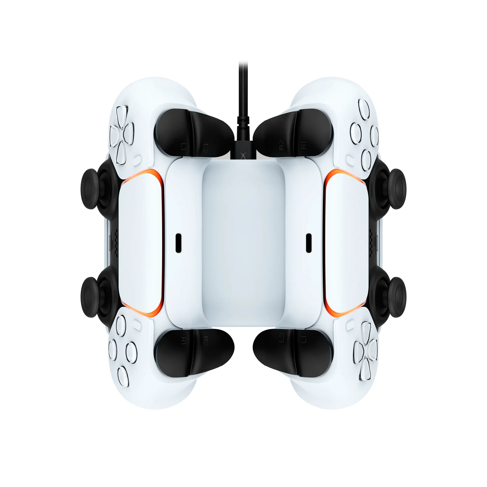 Mit dem HyperX ChargePlay™ Duo können Sie zwei DualSense™-Controller gleichzeitig laden. Stellen Sie sicher, dass immer ein zweiter Controller für mehrere Spieler und für extra lange Gaming-Sessions bereit ist. Diese Ladestation verfügt über eine stabile Bodenplatte in besonders solider, schwerer Ausführung und ist in einem geschmackvollen schwarzweißen Design gehalten, das zum Look Ihrer PlayStation 5 passt.